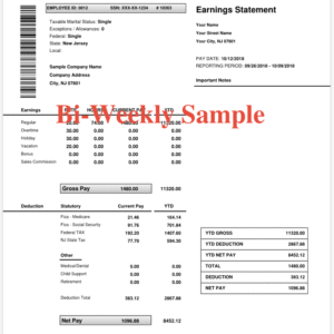 the cost per novelty paystub is $35. (weekly or Bi-weekly)